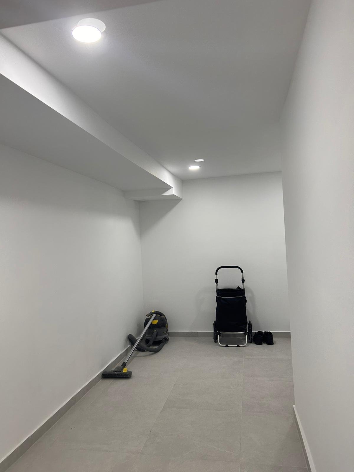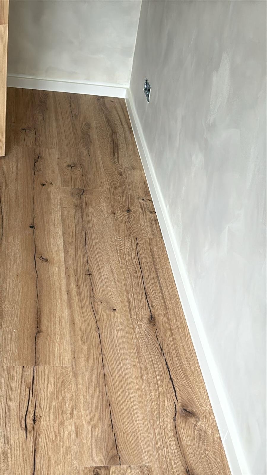 La pièce était en état brut, avec des murs abîmés et un sol irrégulier. Avant les finitions, nous avons effectué un travail préparatoire complet : enduisage, reprise des surfaces, mise en place d’un réseau électrique conforme et isolation. Cette phase préparatoire est indispensable pour garantir la durabilité et la qualité des rénovations.